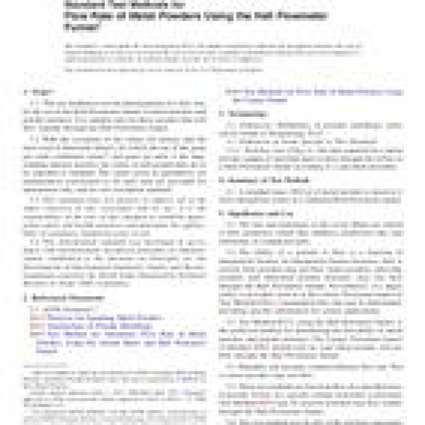 Standard Test Methods for Flow Rate of Metal Powders Using the Hall Flowmeter Funnelstandard by ASTM International, 04/01/2017