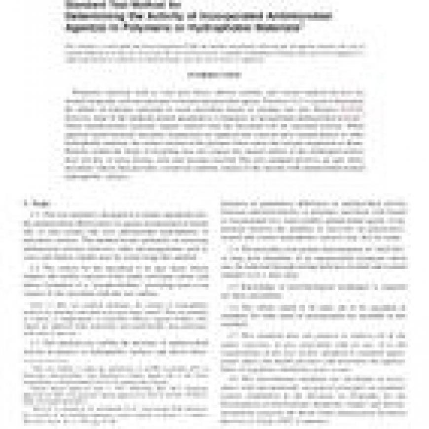 Standard Test Method for Determining the Activity of Incorporated Antimicrobial Agent(s) In Polymeric or Hydrophobic Materialsstandard by ASTM International, 04/01/2017