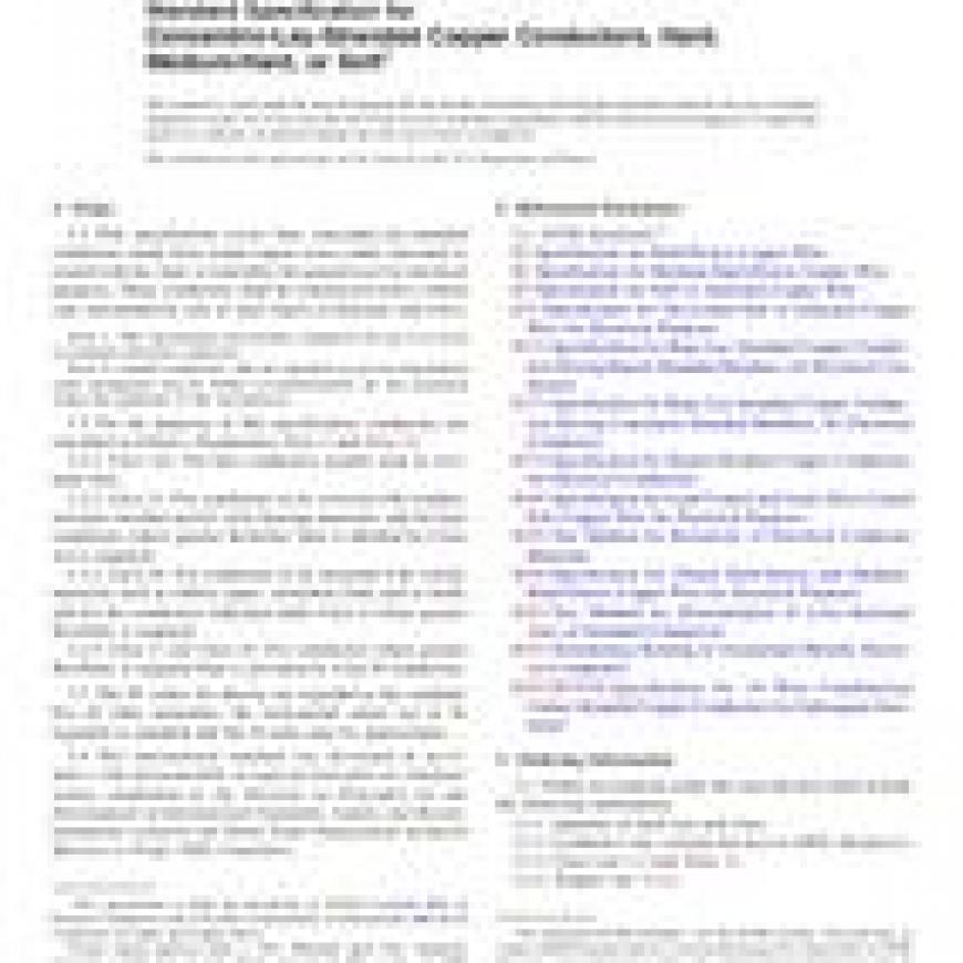 Standard Specification for Concentric-Lay-Stranded Copper Conductors, Hard, Medium-Hard, or Softstandard by ASTM International, 04/01/2017