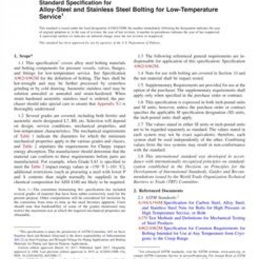 Standard Specification for Alloy-Steel and Stainless Steel Bolting for Low-Temperature Servicestandard by ASTM International, 03/15/2017
