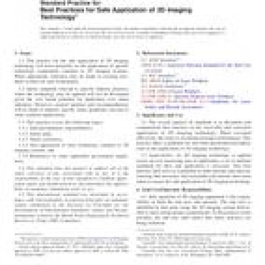Standard Practice for Best Practices for Safe Application of 3D Imaging Technologystandard by ASTM International, 03/15/2017