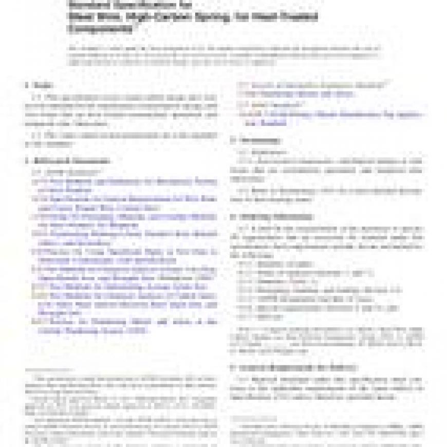 Standard Specification for Steel Wire, High-Carbon Spring, for Heat-Treated Componentsstandard by ASTM International, 03/15/2017