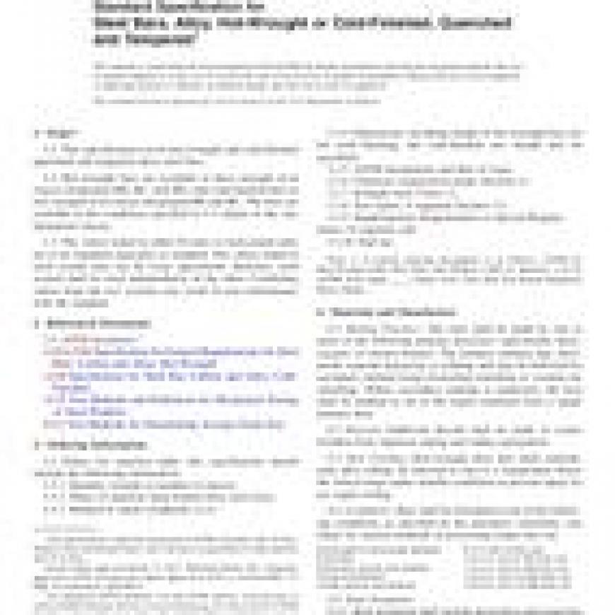 Standard Specification for Steel Bars, Alloy, Hot-Wrought or Cold-Finished, Quenched and Temperedstandard by ASTM International, 03/15/2017