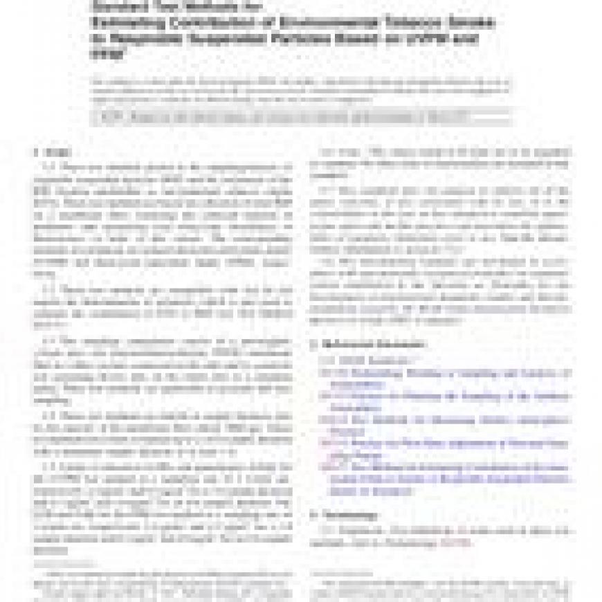 Standard Test Methods for Estimating Contribution of Environmental Tobacco Smoke to Respirable Suspended Particles Based on UVPM and FPMstandard by ASTM International, 03/15/2017