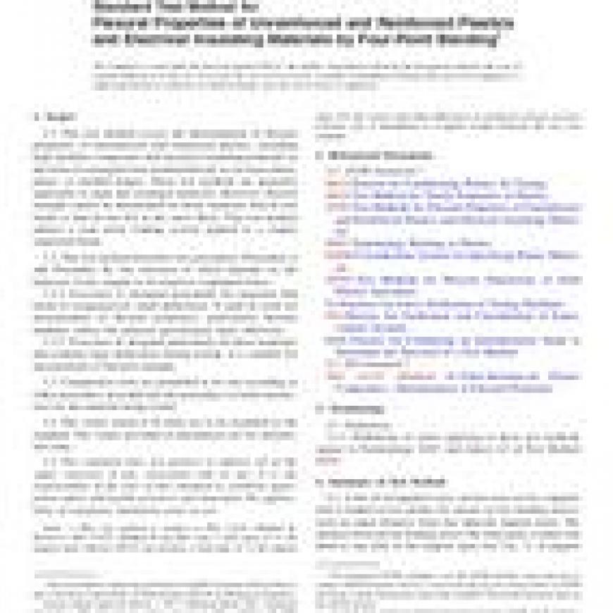 Standard Test Method for Flexural Properties of Unreinforced and Reinforced Plastics and Electrical Insulating Materials by Four-Point Bendingstandard by ASTM International, 03/01/2017