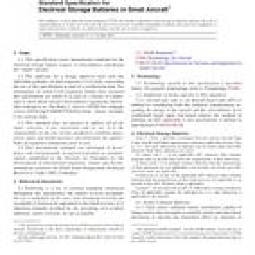 1.1This specification covers international standards for the electrical storage battery aspects of airworthiness and design for small aircraft.