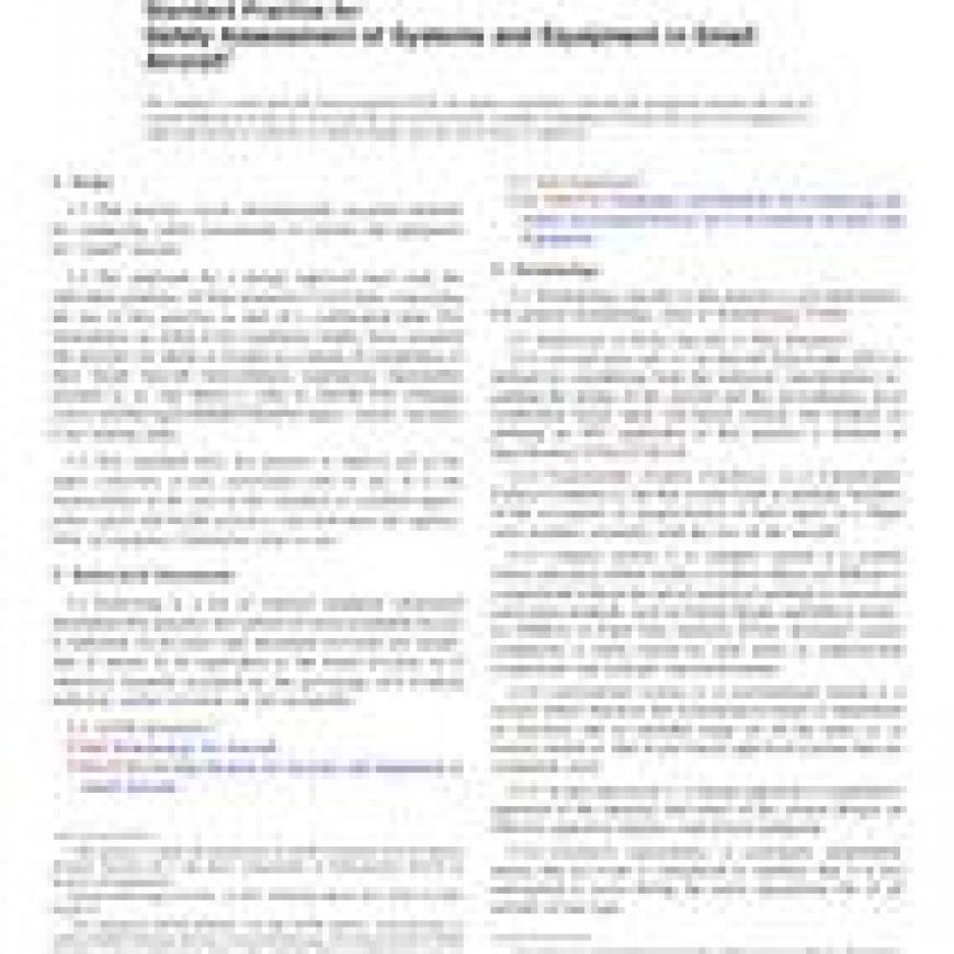 1.1This practice covers internationally accepted methods for conducting safety assessments of systems and equipment for small aircraft.
