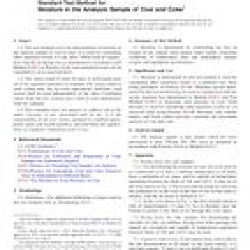 ASTM D3173/D3173M-17 Standard Test Method for Moisture in the Analysis Sample of Coal and Coke