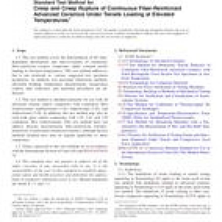 ASTM C1337-17 Standard Test Method for Creep and Creep Rupture of Continuous Fiber-Reinforced Advanced Ceramics Under Tensile Loading at Elevated Temperatures