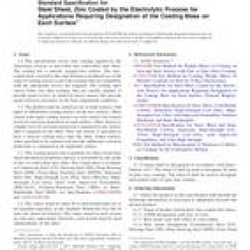 1.1This specification covers zinc coatings applied by the electrolytic process to hot-rolled and cold-rolled steel sheet. The coating has a smooth, spangle-free surface. The zinc-coated sheet covered in this specification is produced in a wide range of coating masses to provide coatings that are compatible with the anticipated service life required. The coating mass varies, from very thin coatings that are usually painted to provide good service, to relatively heavy masses that provide good corrosion resistance in the bare (unpainted) condition.