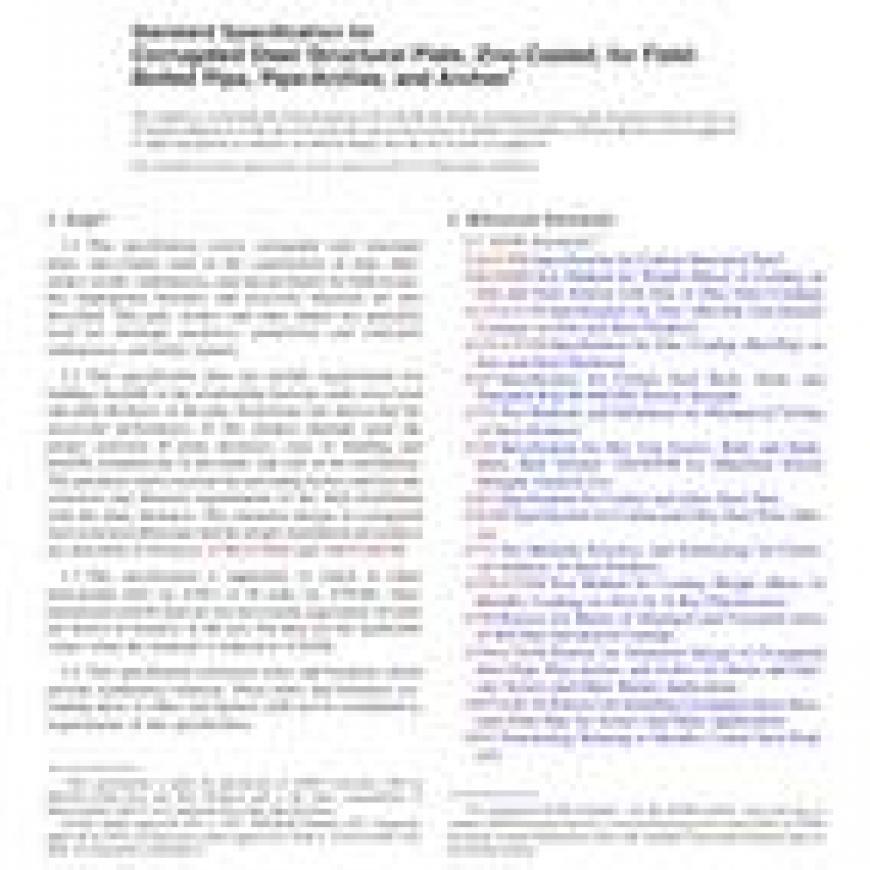 1.1This specification covers corrugated steel structural plate, zinc-coated, used in the construction of pipe, pipe-arches, arches, underpasses, and special shapes for field assembly. Appropriate fasteners and accessory materials are also described. The pipe, arches, and other shapes are generally used for drainage purposes, pedestrian and vehicular underpasses, and utility tunnels.