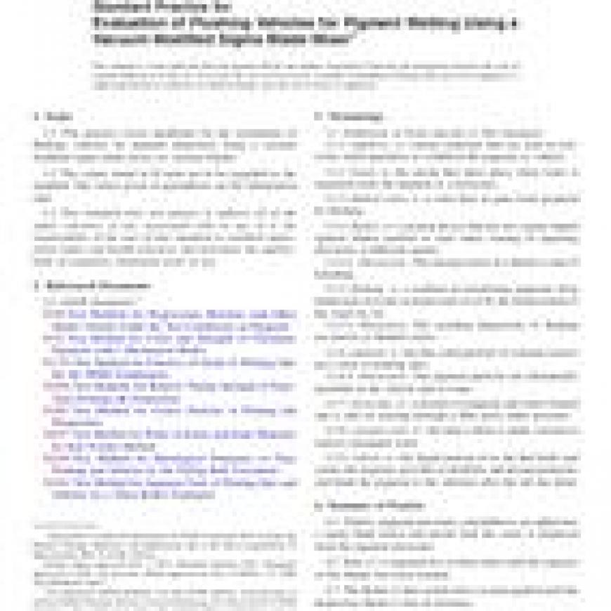 1.1This practice covers guidelines for the evaluations of flushing vehicles for pigment dispersion using a vacuum modified sigma blade mixer, or vacuum flusher.