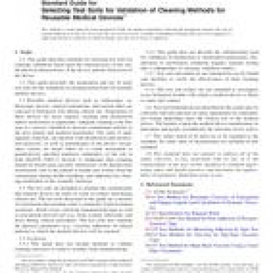 1.2This guide describes the preparation and use of some test soils for the validation of cleaning instructions for reusable medical devices.