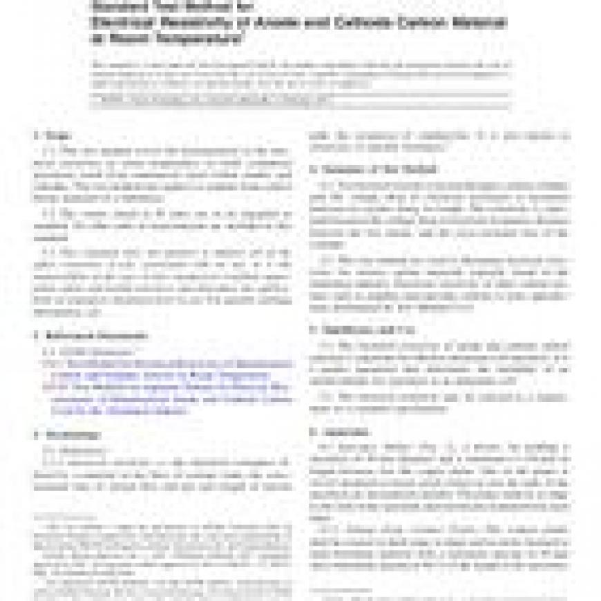ASTM D6120-97(2017)e1 Standard Test Method for Electrical Resistivity of Anode and Cathode Carbon Material at Room Temperature