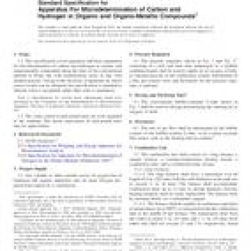 ASTM E191-64(2017) Standard Specification for Apparatus For Microdetermination of Carbon and Hydrogen in Organic and Organo-Metallic Compounds