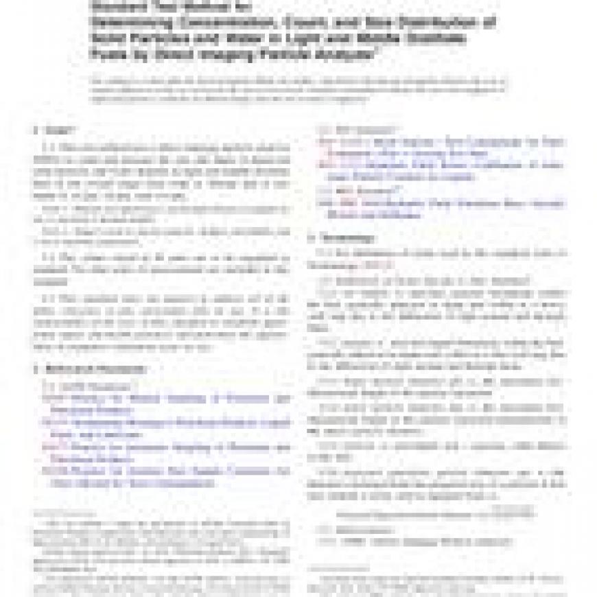 ASTM D8049-16a Standard Test Method for Determining Concentration, Count, and Size Distribution of Solid Particles and Water in Light and Middle Distillate Fuels by Direct Imaging Particle Analyzer