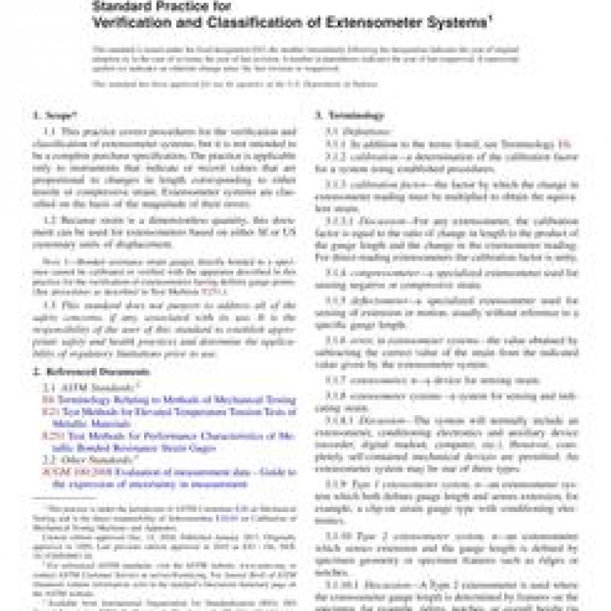 ASTM E83-16 Standard Practice for Verification and Classification of Extensometer Systems