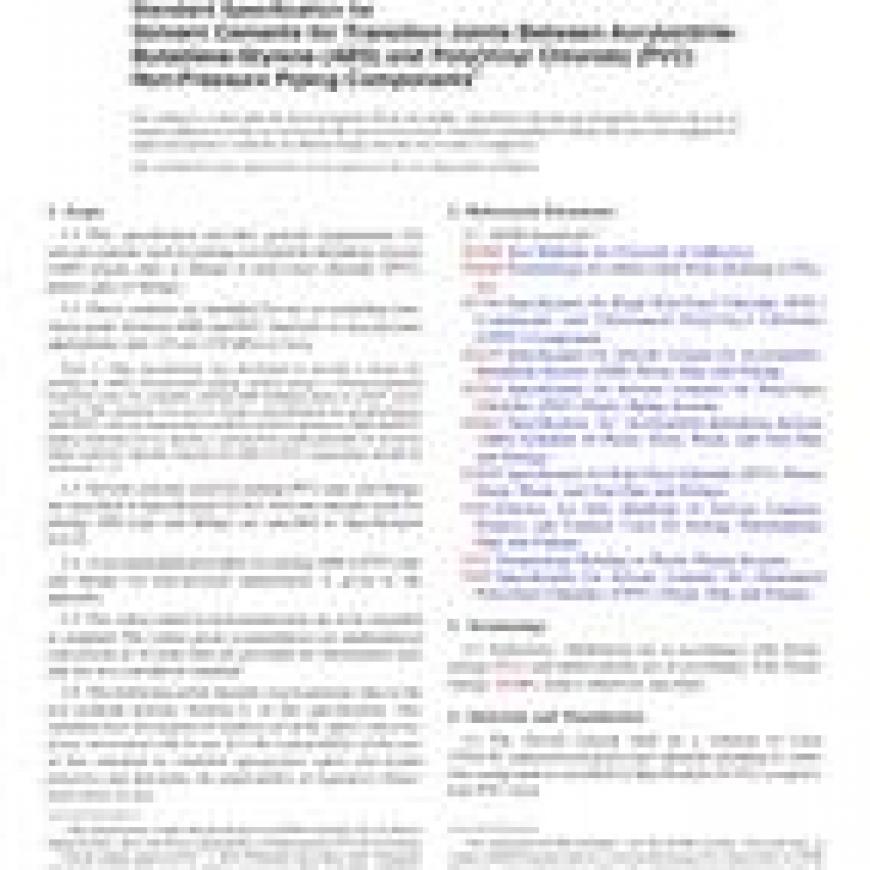 1.3Solvent cements used for joining PVC pipe and fittings are specified in Specification D2564. Solvent cements used for joining ABS pipe and fittings are specified in Specification D2235.