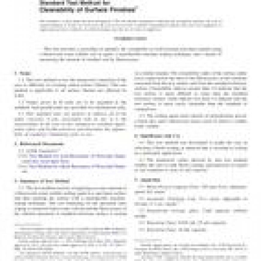 1.1This test method covers the numerical evaluation of the ease or difficulty of cleaning soiled surface finishes. This test method is applicable to all surface finishes not affected by water.