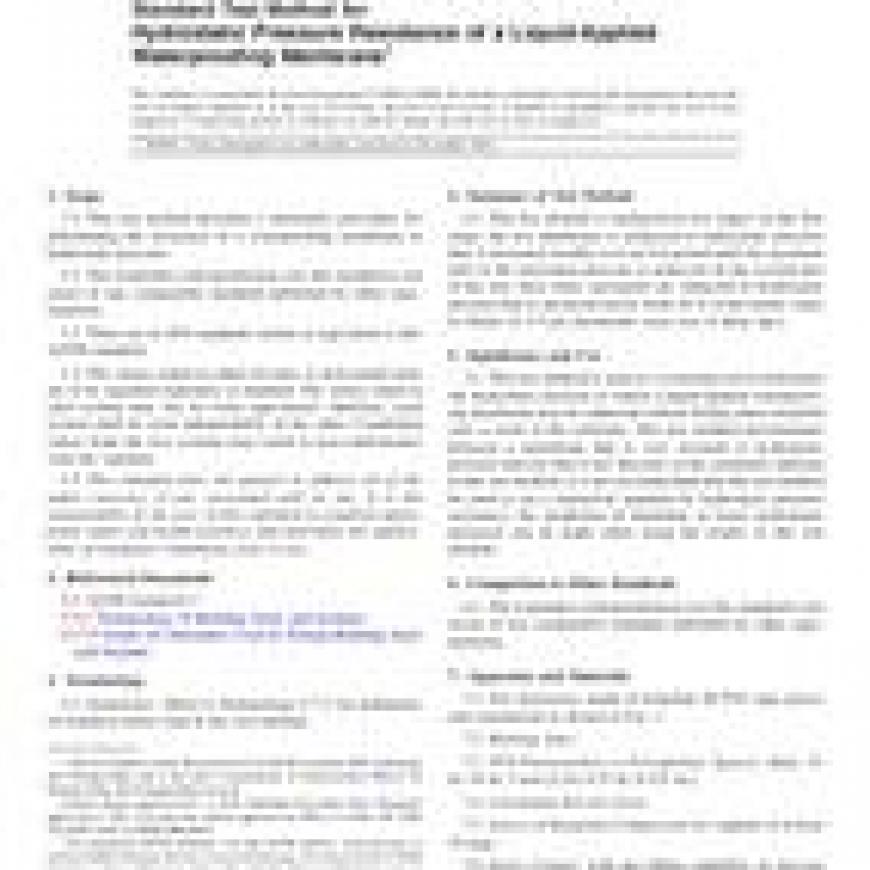 ASTM C1306/C1306M-08(2016)e1 Standard Test Method for Hydrostatic Pressure Resistance of a Liquid-Applied Waterproofing Membrane