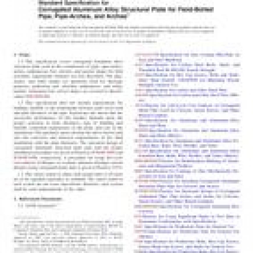 ASTM B746/B746M-16 Standard Specification for Corrugated Aluminum Alloy Structural Plate for Field-Bolted Pipe, Pipe-Arches, and Arches