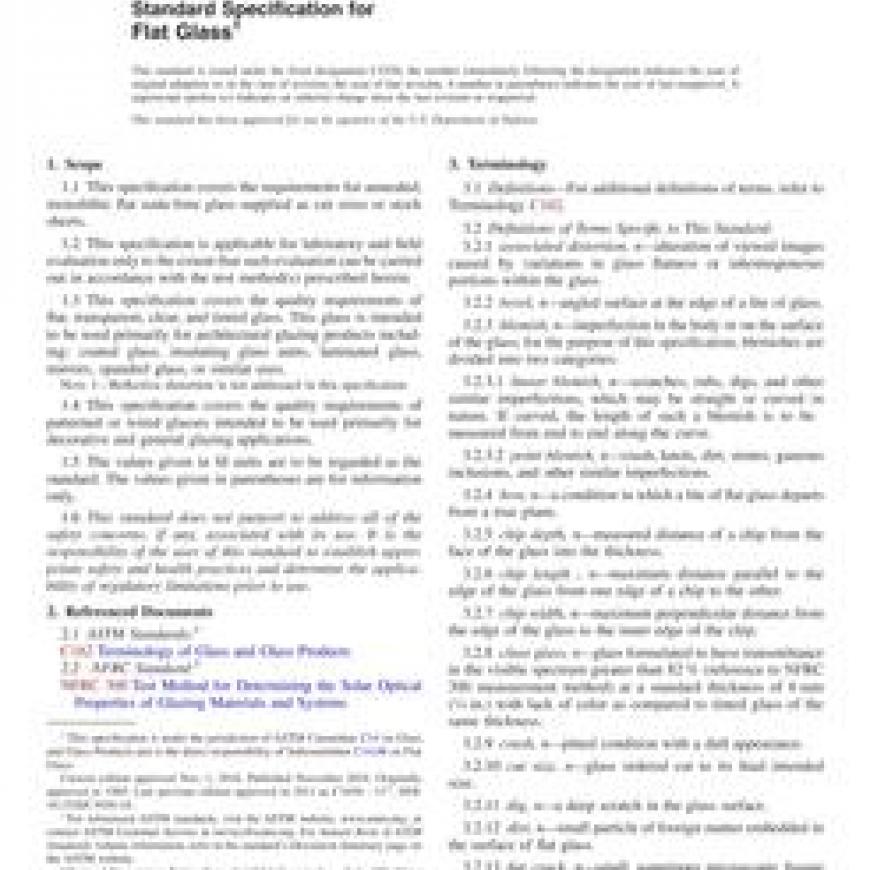 1.1This specification covers the requirements for annealed, monolithic flat soda-lime glass supplied as cut sizes or stock sheets.