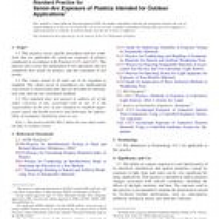 1.1This practice covers specific procedures and test conditions that are applicable for xenon-arc exposure of plastics conducted in accordance with Practices G151 and G155. This practice also covers the preparation of test specimens, the test conditions best suited for plastics, and the evaluation of test results.