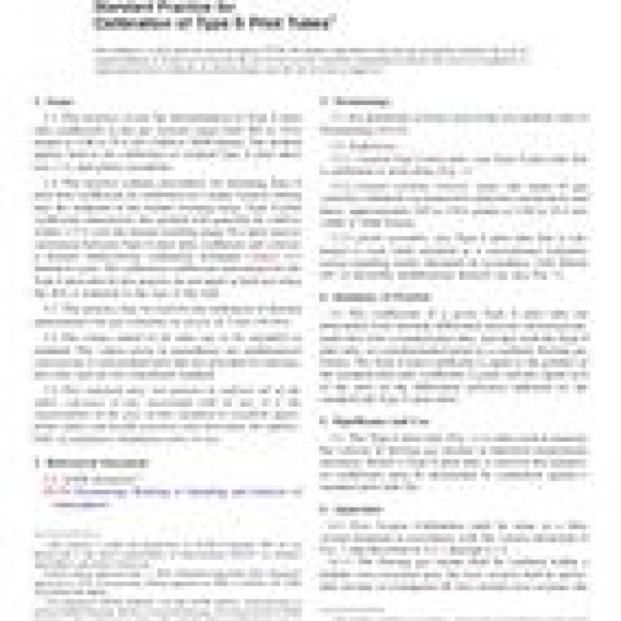 1.2This practice outlines procedures for obtaining Type S pitot tube coefficients by calibration at a single-velocity setting near the midpoint of the normal working range. Type S pitot coefficients obtained by this method will generally be valid to within 3% over the normal working range. If a more precise correlation between Type S pitot tube coefficient and velocity is desired, multivelocity calibration technique (Annex A1) should be used. The calibration coefficients determined for the Type S pitot tube by this practice do not apply in field use when the flow is nonaxial to the face of the tube.