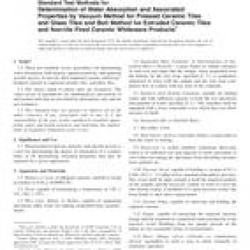 ASTM C373-16 Standard Test Methods for Determination of Water Absorption and Associated Properties by Vacuum Method for Pressed Ceramic Tiles and Glass Tiles and Boil Method for Extruded Ceramic Tiles and Non-tile Fired Ceramic Whiteware Products