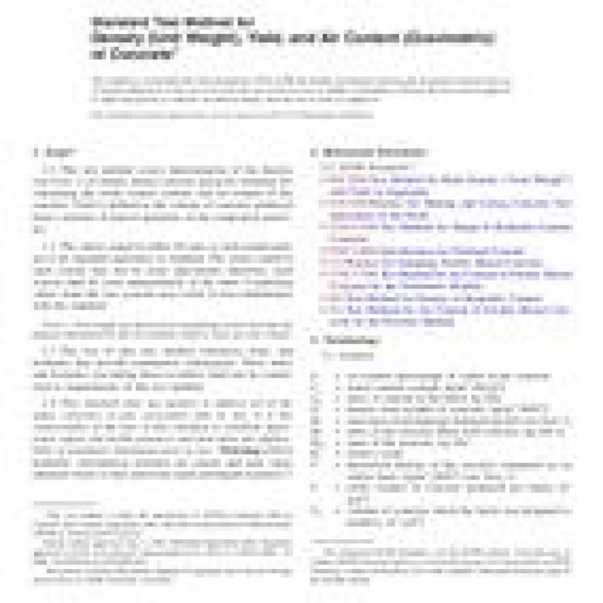 ASTM C138/C138M-16a Standard Test Method for Density (Unit Weight), Yield, and Air Content (Gravimetric) of Concrete