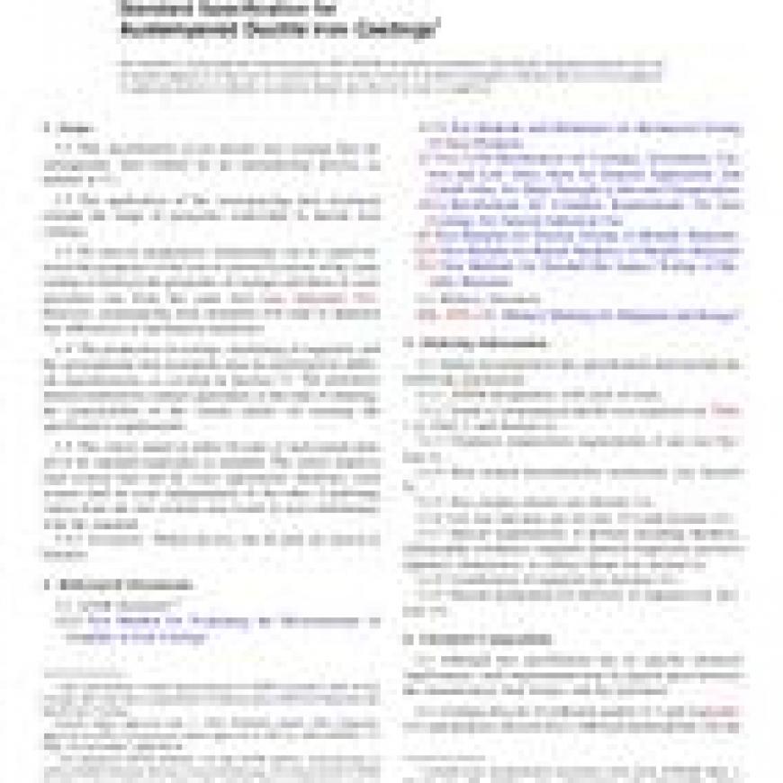1.1This specification covers ductile iron castings that are subsequently heat treated by an austempering process as defined in 9.1.