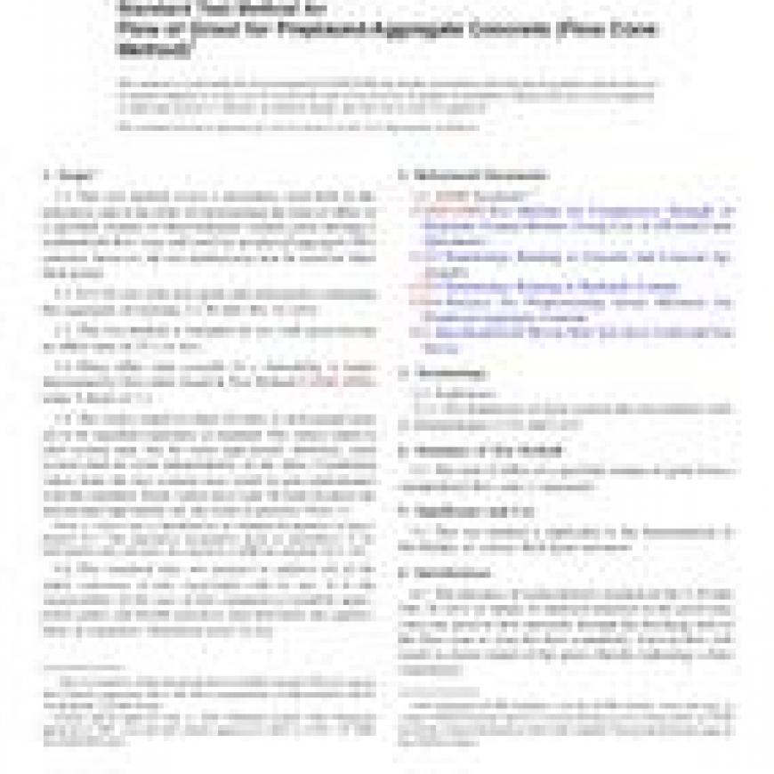 1.1This test method covers a procedure, used both in the laboratory and in the field, for determining the time of efflux of a specified volume of fluid hydraulic cement grout through a standardized flow cone and used for preplaced-aggregate (PA) concrete; however, the test method may also be used for other fluid grouts.