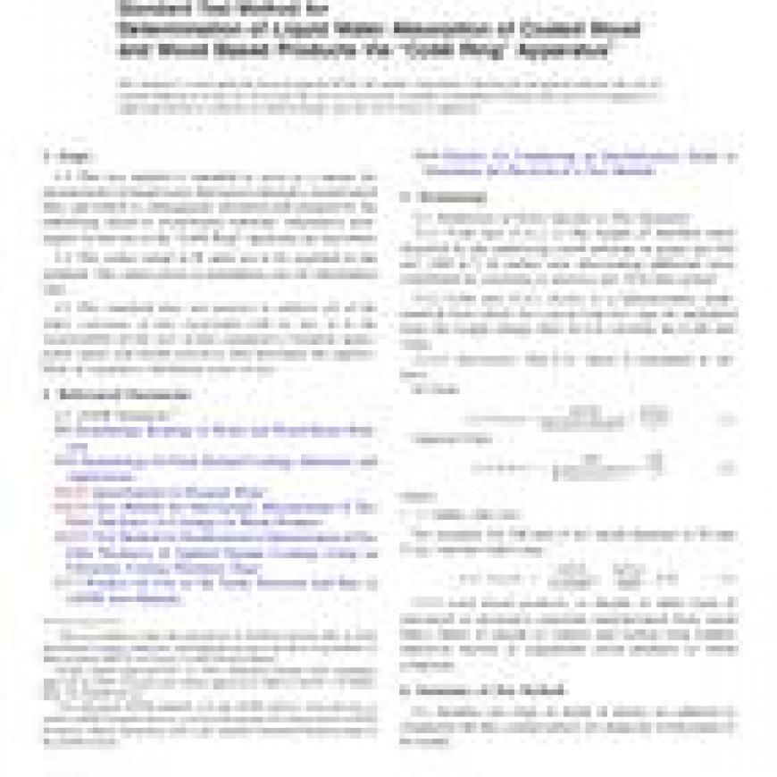 ASTM D5795-16 Standard Test Method for Determination of Liquid Water Absorption of Coated Wood and Wood Based Products Via “Cobb Ring” Apparatus