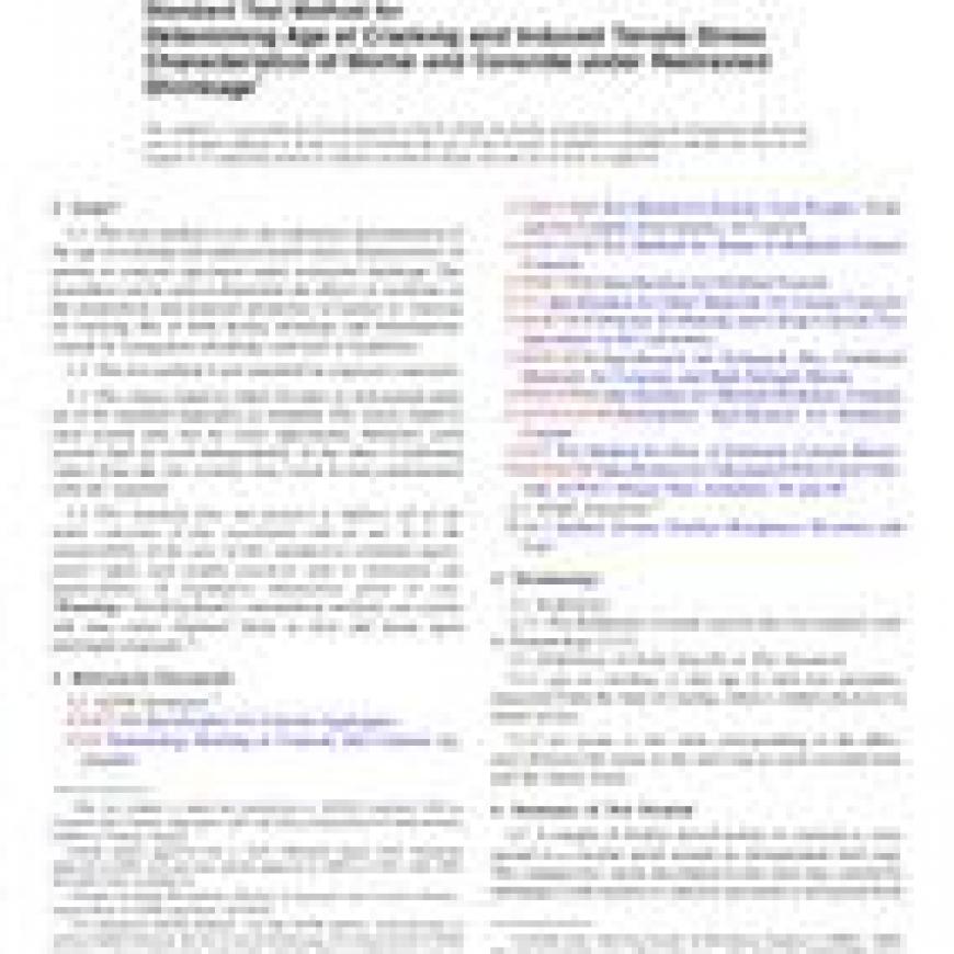 ASTM C1581/C1581M-16 Standard Test Method for Determining Age at Cracking and Induced Tensile Stress Characteristics of Mortar and Concrete under Restrained Shrinkage