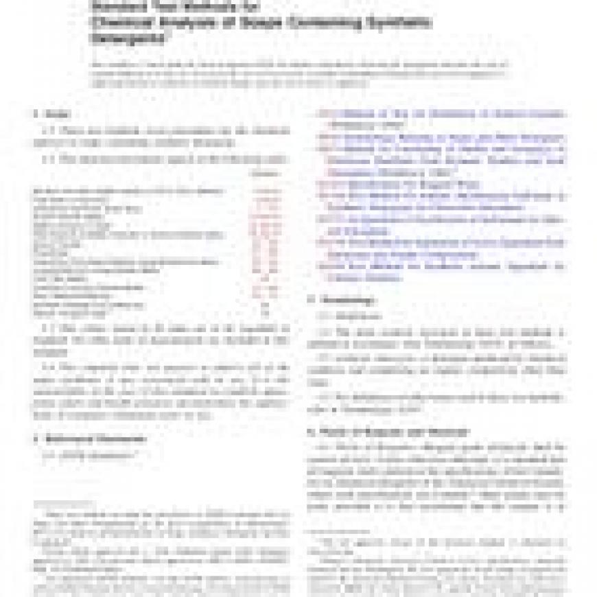 1.1These test methods cover procedures for the chemical analysis of soaps containing synthetic detergents.