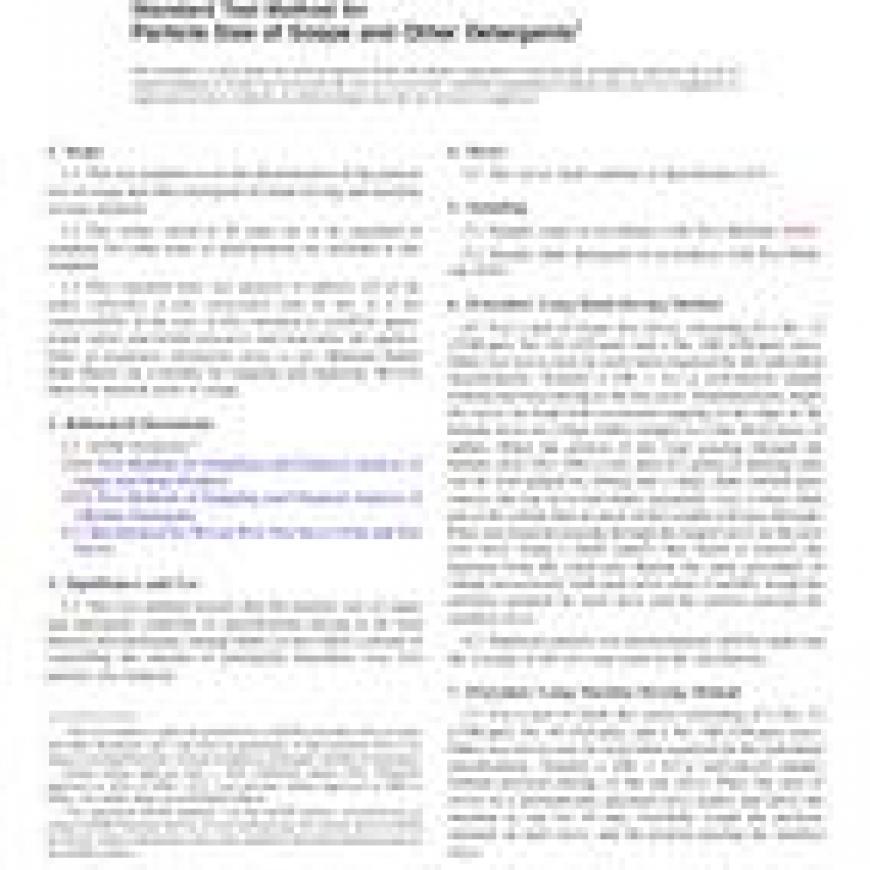 1.1This test method covers the determination of the particle size of soaps and other detergents by hand sieving and machine sieving methods.