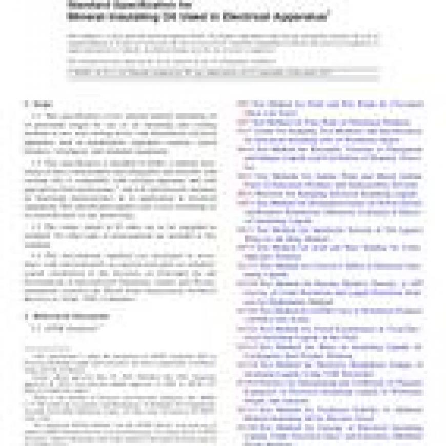 ASTM D3487-16e1 Standard Specification for Mineral Insulating Oil Used in Electrical Apparatus