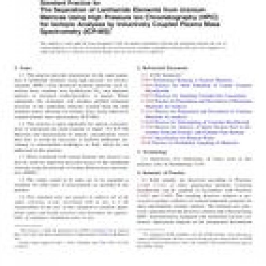 ASTM C1845-16 Standard Practice for The Separation of Lanthanide Elements from Uranium Matrices Using High Pressure Ion Chromatography (HPIC) for Isotopic Analyses by Inductively Coupled Plasma Mass Spectrometry (ICP-MS)