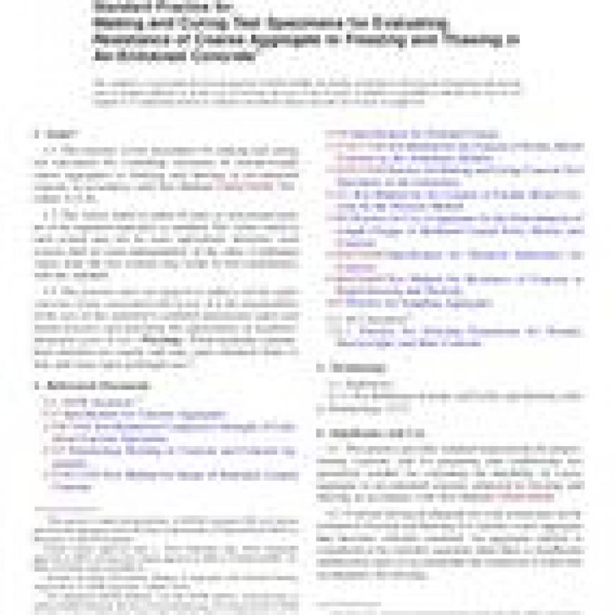ASTM C1646/C1646M-16 Standard Practice for Making and Curing Test Specimens for Evaluating Resistance of Coarse Aggregate to Freezing and Thawing in Air-Entrained Concrete