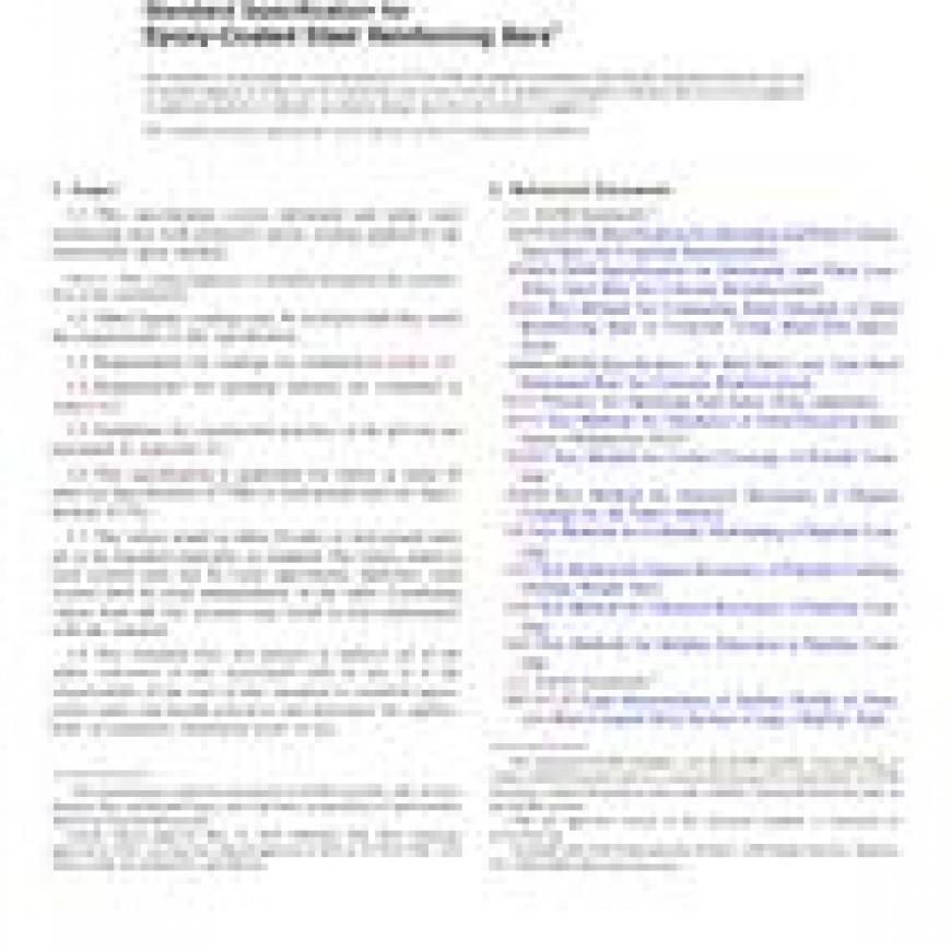 1.1This specification covers deformed and plain steel reinforcing bars with protective epoxy coating applied by the electrostatic spray method.