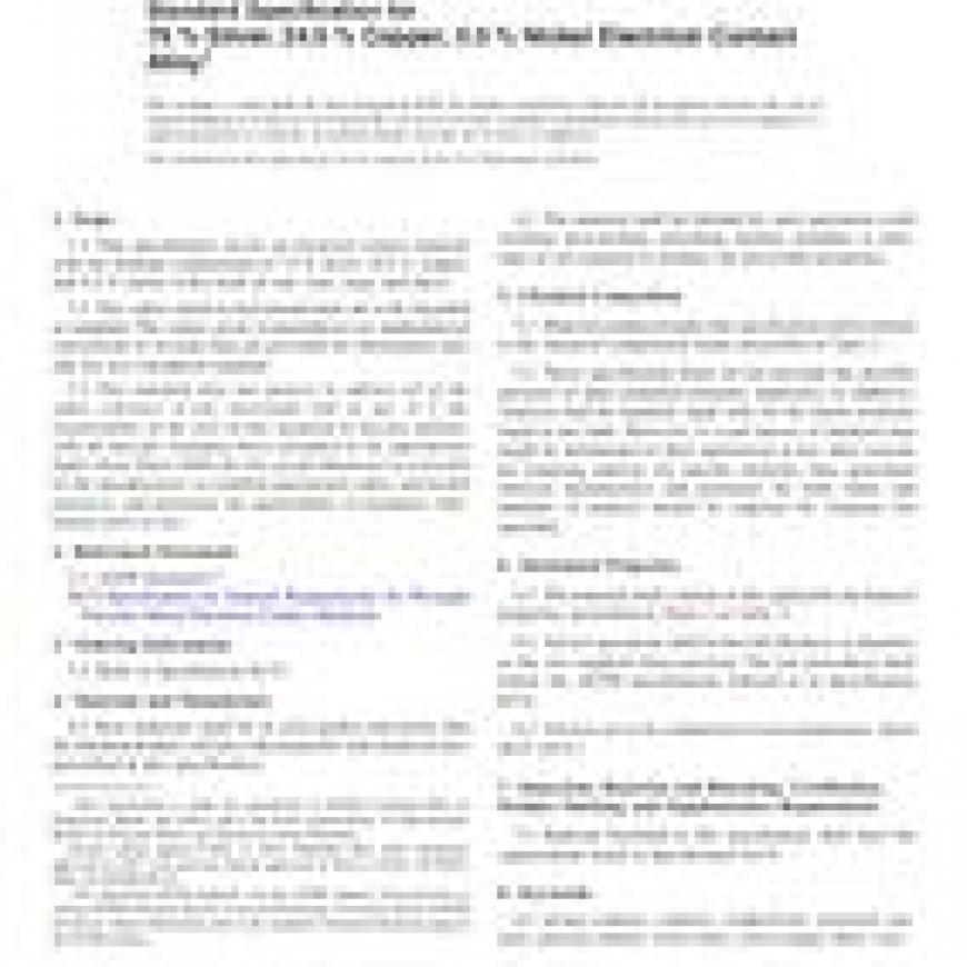 ASTM B780-16 Standard Specification for 75 % Silver, 24.5 % Copper, 0.5 % Nickel Electrical Contact Alloy