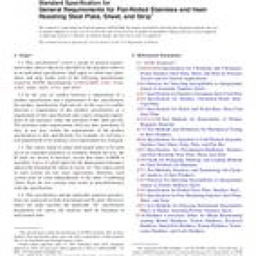 1.1This specification2 covers a group of general requirements that, unless otherwise specified in the purchase order or in an individual specification, shall apply to rolled steel plate, sheet, and strip, under each of the following specifications issued by ASTM: Specifications A240/A240M, A263, A264, A265, A666, A693, A793, and A895.