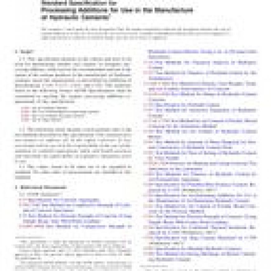 1.1This specification pertains to the criteria and tests to be used for determining whether a(n) organic or inorganic processing addition, when used in the recommended amount at the option of the cement producer in the manufacture of hydraulic cements, meets the requirements as prescribed by definition in Specifications C150, C1157, C845, and C595. The materials listed in the following former ASTM Specifications shall be considered as meeting the organic processing additions requirements of this specification: