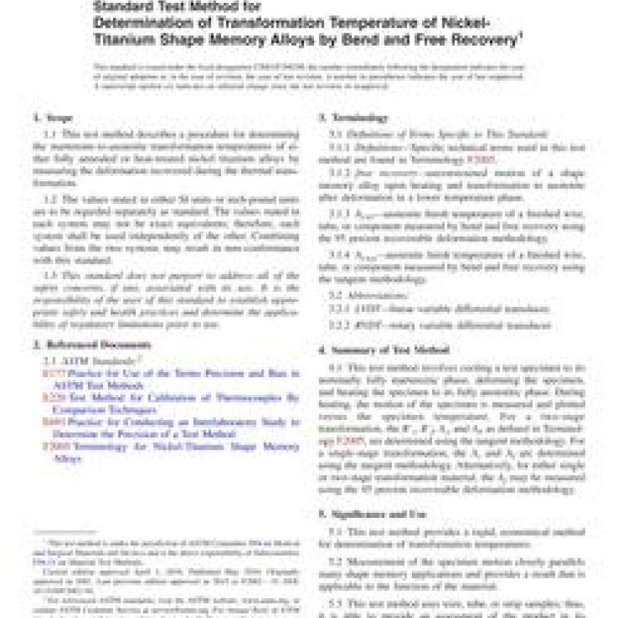 ASTM F2082/F2082M-16 Standard Test Method for Determination of Transformation Temperature of Nickel-Titanium Shape Memory Alloys by Bend and Free Recovery