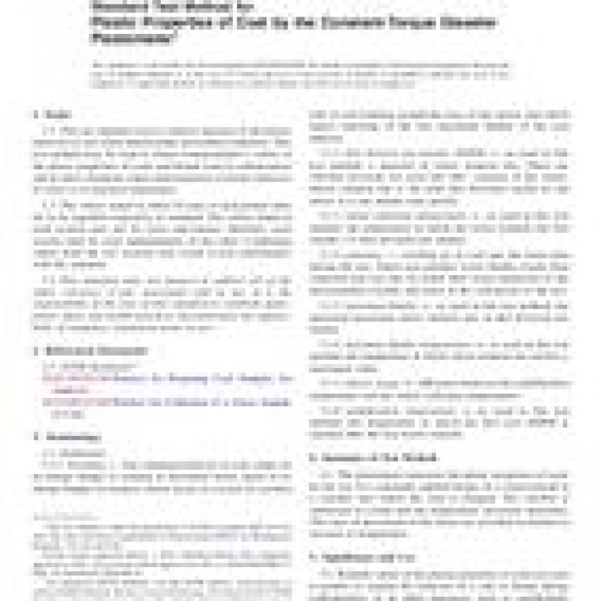 ASTM D2639/D2639M-16 Standard Test Method for Plastic Properties of Coal by the Constant-Torque Gieseler Plastometer