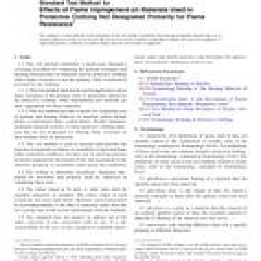 ASTM F1358-16 Standard Test Method for Effects of Flame Impingement on Materials Used in Protective Clothing Not Designated Primarily for Flame Resistance