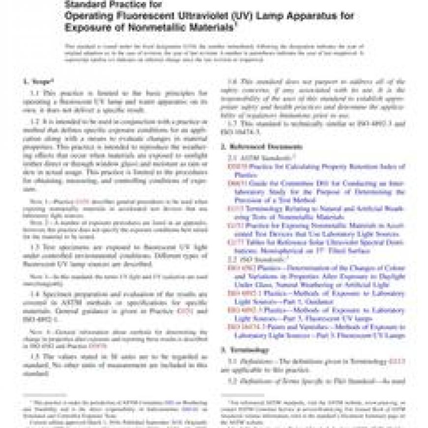 ASTM G154-16 Standard Practice for Operating Fluorescent Ultraviolet (UV) Lamp Apparatus for Exposure of Nonmetallic Materials