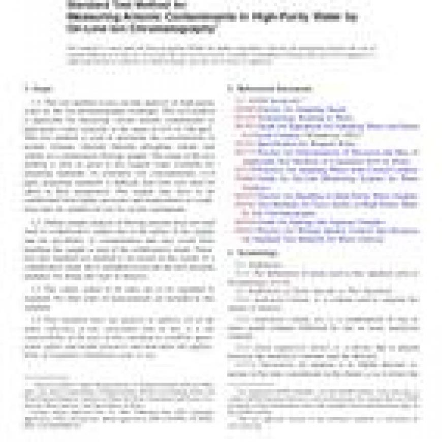 ASTM D5996-16 Standard Test Method for Measuring Anionic Contaminants in High-Purity Water by On-Line Ion Chromatography