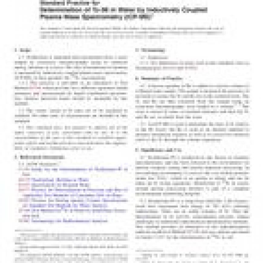 ASTM D8026-16 Standard Practice for Determination of Tc-99 in Water by Inductively Coupled Plasma Mass Spectrometry (ICP-MS)