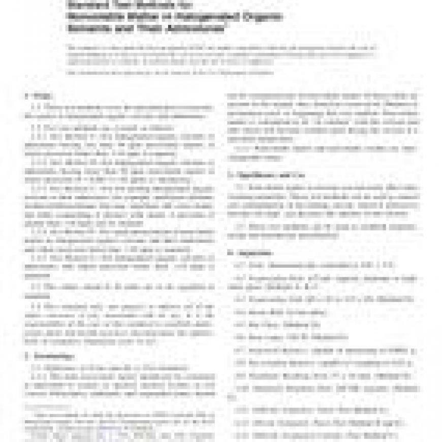 1.1These test methods cover the determination of nonvolatile matter in halogenated organic solvents and admixtures.